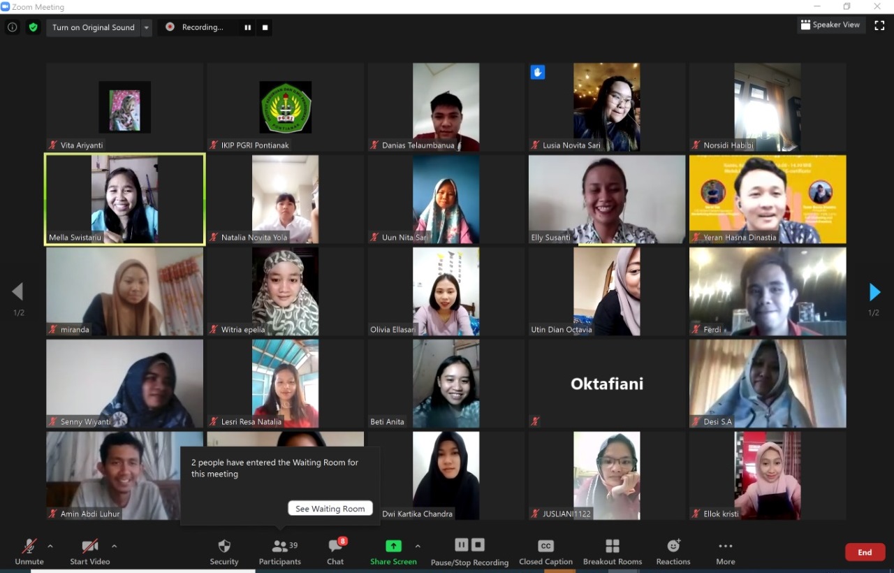 IKIP PGRI Pontianak berkolaborasi dengan Best Partner Education dan Rumah Zakat, menyelenggarakan workshop daring English for Marketing yang bertajuk “Exploring and Executing English as Market Prospects” Kamis (9/7/2020). Acara ini dibuka secara resmi oleh Wakil Dekan 1 Fakultas Pendidikan Bahasa dan Seni, Al Ashadi Alimin, M.Pd. Workshop ini dilaksanakan melalui Zoom meeting dan siaran langsung YouTube melalui kanal IKIP PGRI Pontianak Official.
